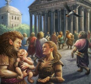Leoni is a great example of this. In the original gazetteer, Leoni didn’t even exist. Its primary inhabitants—the Manticora—were described in the original Creature Collection as chaotic evil, man-eating, catlike creatures. The Manticora have since been updated to be a more well-rounded, playable race of lionfolk in the new Scarred Lands Player’s Guide, and Leoni is a cultural center that draws from three areas of Ghelspad—the Bleak Savannah, the Haggard Hills, and the Blood Steppes. Here in the Vigil Watch supplement, we get to learn more about the makeup of the city, its festivals and traditions, and some great story hooks for future adventures. One example is the Hunter’s Library, “a sprawling center of several buildings and open areas filled to the brim with shared knowledge, fascinating creatures, and plants from across the continent.” The library is well-detailed, and there are suggestions for encounters with some of its residents sprinkled throughout the exhibit descriptions.